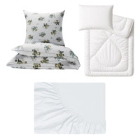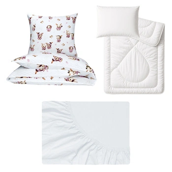 Zestaw pościeli 100x160 + 40x60 + prześcieradło jersey 80x160 | 246pol | biała | myszki zwierzątka