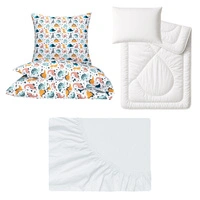Zestaw pościeli 100x160 + 50x60 + prześcieradło jersey 80x160 | 411bia | biała | dinozaury