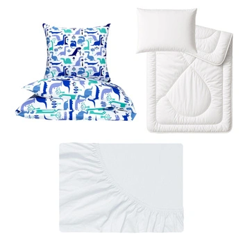 Zestaw pościeli 100x160 + 50x60 + prześcieradło jersey 80x160 | 411din | biało niebieska | dinozaury