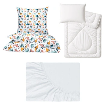 Zestaw pościeli 100x160 + 50x60 + prześcieradło jersey 80x160 | 411Nni | biała | dinozaury