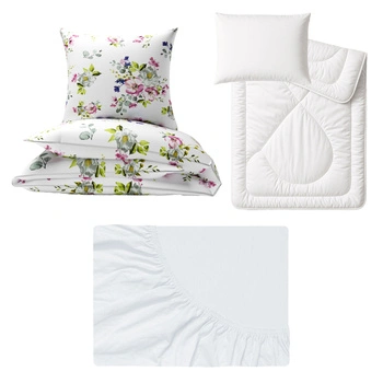 Zestaw pościeli 100x160 + 50x60 + prześcieradło jersey 80x160 | 426los | biała | kwiaty jabłoni