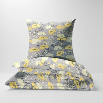 Pościel bawełniana 160x200 + poszewki na poduszkę 2*70x80 | 219zol | szaro żółta | kwiaty