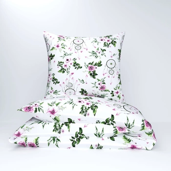 Pościel bawełniana 200x220 + poszewki na poduszkę 2*70x80 | 250zie | biało zielona | łapacz snów
