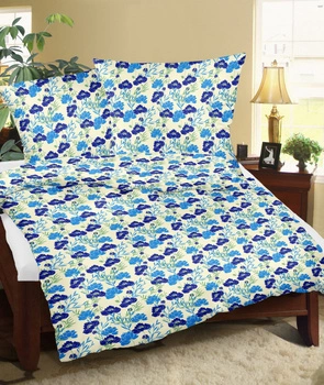 Pościel z kory 200x220 + poszewki na poduszkę 2*70x80 | 219niebieski | niebieska | kwiaty