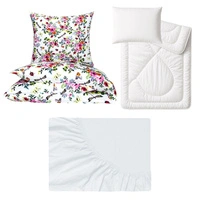 Zestaw pościeli 100x160 + 50x60 + prześcieradło jersey 80x160 | 348Mbi | biała | kwiaty i motyle