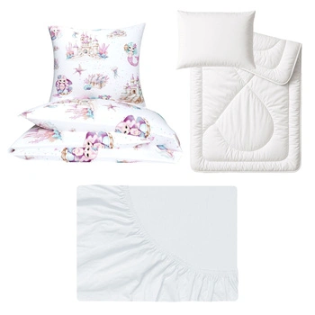 Zestaw pościeli 100x160 + 50x60 + prześcieradło jersey 80x160 | 436syr | biało pastelowa | syrenki