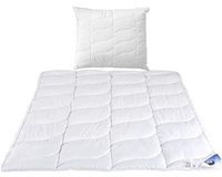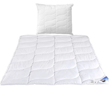 DORMI komplet kołdra i poduszka jest dostępny w kilku rozmiarach. Na łóżko dwuosobowe idealny będzie wymiar kołdry 140 x 200 oraz 160 x 200. W zależności od preferencji wybierz rozmiar, który będzie Ci bardziej odpowiadał. Poduszka także jest dostępna w dwóch opcjach: mniejsza ma 50 x 60, a większa – 70 x 80. Cała linia DORMI została wyprodukowana przez polską firmę działającą na rynku od lat – AMW Nawrot. Zarówno poduszka, jak i kołdra zostały wykonane z niesamowicie miękkiej i przyjemnej w dotyku mikrofibry. Mimo iż poliester jest niewiarygodnie delikatnym materiałem, termicznie skręcane włókna o spiralnym kształcie zapewniają sprężystość i odporność na mechaniczne uszkodzenia. Całość tworzy funkcjonalną powłokę termoizolacyjną, która ociepla i chroni przed zimnem nawet w najbardziej mroźne wieczory. Poduszka została w całości wypełniona kulkami poliestrowymi Armball. Dzięki temu dopasowuje się ona idealnie do kształtu głowy i pozwala na swobodne ułożenie szyi. W rezultacie odcinek szyjny kręgosłupa jest chroniony przed nienaturalnym skrzywieniem. Kulki dodatkowo przepuszczają powietrze, co zapewnia niebywałą lekkość. Utrudnia to także osadzanie się kurzu i roztoczy. Zestaw kołdra i poduszka od DORMI został przebadany laboratoryjnie – może być bez obaw użytkowany przez alergików.