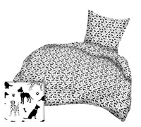 Pościel dla dziecka bawełniana 120x160 + poszewka na poduszkę 50x60 | 189bia | biało czarna | psy