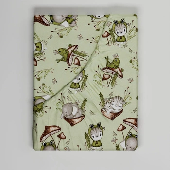 Prześcieradło z gumką do łóżeczka 70x140 bawełniane | 210zab | zielone | koty żabki słonie