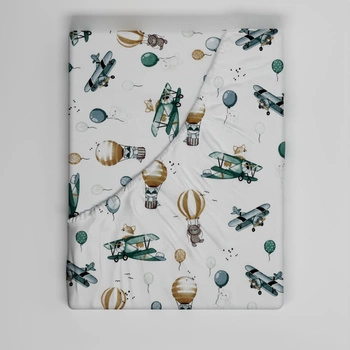 Prześcieradło z gumką do łóżeczka 70x140 bawełniane | 081sam | białe | samoloty balony