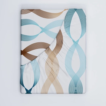 Prześcieradło z gumką do łóżeczka 80x180 bawełniane | 343nie | niebiesko brązowe | geometryczna wstążki