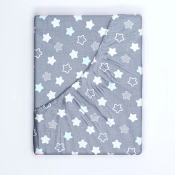 Prześcieradło z gumką do łóżeczka 80x190 bawełniane | 300róż | szaro różowe | gwiazdki