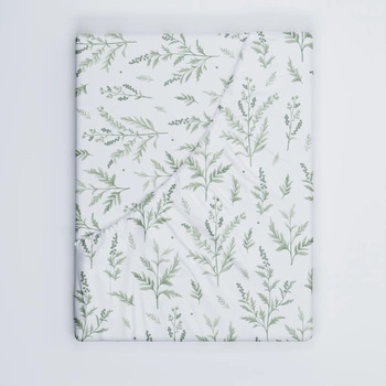Prześcieradło z gumką do łóżeczka 80x200 bawełniane | 102but | zielone | liście i gałązki