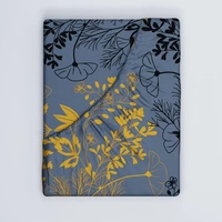 Prześcieradło z gumką do łóżeczka 90x160 bawełniane | 513kol | granatowe | kwiaty liście