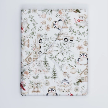 Prześcieradło z gumką do łóżeczka 90x160 bawełniane | 166swi | beżowe | świąteczna zimowa