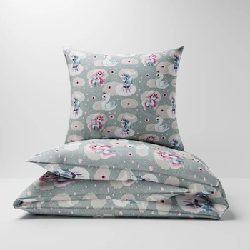 Pościel dla dziecka bawełniana 120x160 + poszewka na poduszkę 50x70 | 103bez | szara | jednorożce