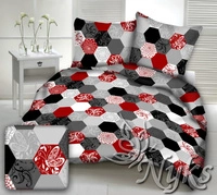 Pościel dla dziecka bawełniana 120x160 + poszewka na poduszkę 50x70 | 208red | szaro czerwona | plastry miodu
