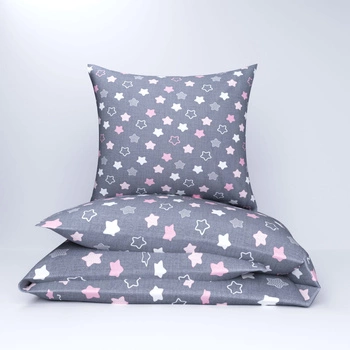 Pościel bawełniana 160x200 + poszewka na poduszkę 50x60 | 300róż | szaro różowa | gwiazdki