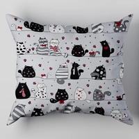 Pościel bawełniana 160x200 + poszewka na poduszkę 50x60 | 061s-c | szaro czerwona | koty
