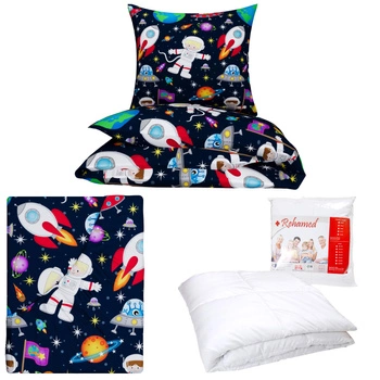 Zestaw pościeli 100x160 + 40x60 + prześcieradło we wzorze 80x160 | 202jas | niebieska | kosmos