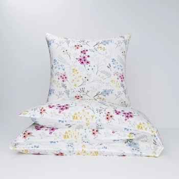 Pościel flanela 160x200 + poszewki na poduszkę 2*70x80 | 129blu | biała | polne kwiaty
