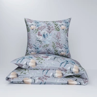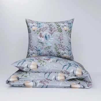 Pościel bawełniana 160x200 + poszewki na poduszkę 2*70x80 | 175sza | szara | kwiaty liście