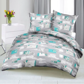 Pościel flanela 160x200 + poszewki na poduszkę 2*70x80 | 041s-t | szaro turkusowa | kwiaty