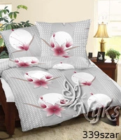 Pościel z kory 160x200 + poszewki na poduszkę 2*70x80 | 116szary | szara | kwiaty