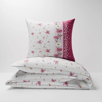 Pościel z kory 160x200 + poszewki na poduszkę 2*70x80 | 022róż | różowa | kwiaty