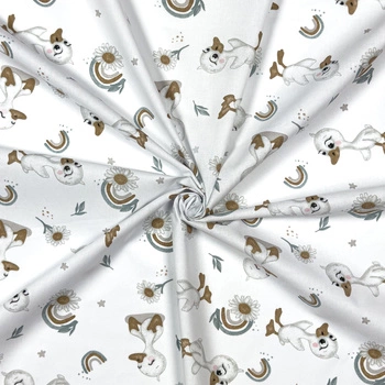 Prześcieradło na leżak do przedszkola | 104tip | białe | zwierzątka na campingu