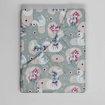 Prześcieradło z gumką do łóżeczka 90x200 bawełniane | 103bez | szare | jednorożce