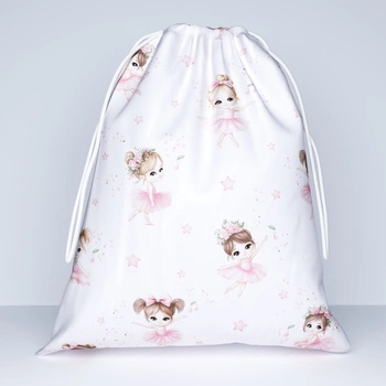 Worek na pościel do przedszkola żłobka | 275ROZ | biało różowa | baletnice i nutki