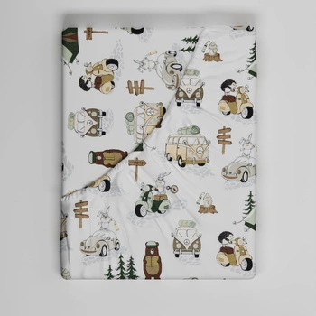 Prześcieradło z gumką do łóżeczka 80x160 bawełniane | 099beż | biało brązowe | miś na campingu