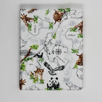 Prześcieradło z gumką do łóżeczka 80x180 bawełniane | 198map | białe | kontynenty zwierzęta
