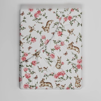 Prześcieradło z gumką do łóżeczka 80x200 bawełniane | 428bia | białe | króliczki