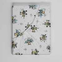 Prześcieradło z gumką do łóżeczka 80x200 bawełniane | 303Sni | biało niebieskie | misie samoloty