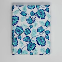 Prześcieradło z gumką do łóżeczka 90x160 bawełniane | 032tur | biało turkusowe | liście monstery