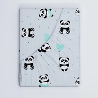 Prześcieradło z gumką do łóżeczka 90x190 bawełniane | 198Pmi | szaro miętowe | misie panda
