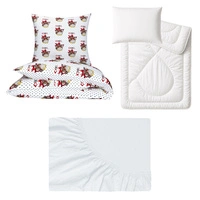 Zestaw pościeli 100x160 + 40x60 + prześcieradło jersey 80x160 | 002bor | bordowa | świąteczna Mikołaje