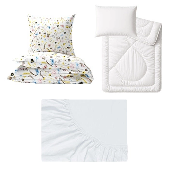 Zestaw pościeli 100x160 + 40x60 + prześcieradło jersey 80x160 | 004pol | biała | motyle kwiaty