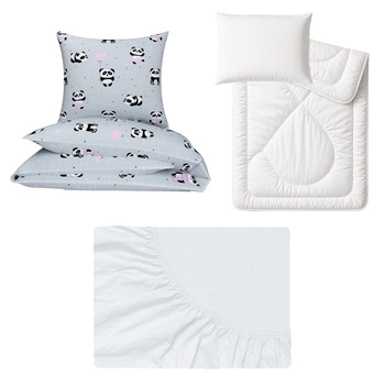 Zestaw pościeli 100x160 + 40x60 + prześcieradło jersey 80x160 | 198Pro | szaro różowa | misie pandy