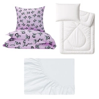 Zestaw pościeli 100x160 + 40x60 + prześcieradło jersey 80x160 | 184pas | biała | motyle