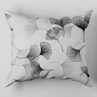 Poszewka bawełniana na poduszkę 40x60 | 324b-s | biało szara | liście miłorzębu