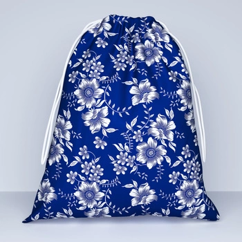 Worek na pościel do przedszkola żłobka | 116bgr | biało granatowy | kwiaty lilie
