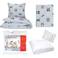 Zestaw pościeli 100x160 + 40x60 + prześcieradło we wzorze 80x160 | 198Pro | szaro różowa | misie pandy