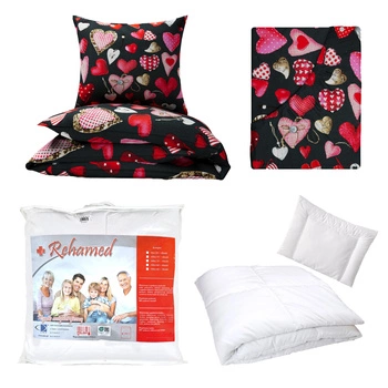Zestaw pościeli 100x160 + 40x60 + prześcieradło we wzorze 80x160 | 073grf | grafitowa | serca walentynki