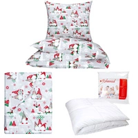 Zestaw pościeli 100x160 + 50x60 + prześcieradło we wzorze 80x160 | 421zie | szara | wzór świąteczny skrzaty