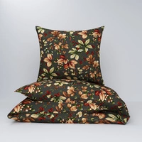 Pościel bawełniana 140x200 + poszewka na poduszkę 50x60 | 389Lgr | grafitowa | liście jesienne