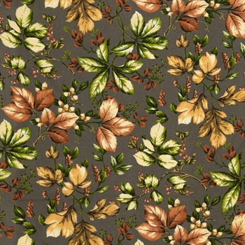 Pościel bawełniana 160x200 + poszewka na poduszkę 70x80 | 389Lgr | grafitowa | liście jesienne