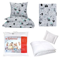 Zestaw pościeli 100x160 + 50x60 + prześcieradło we wzorze 80x160 | 196róż | szaro różowa | misie